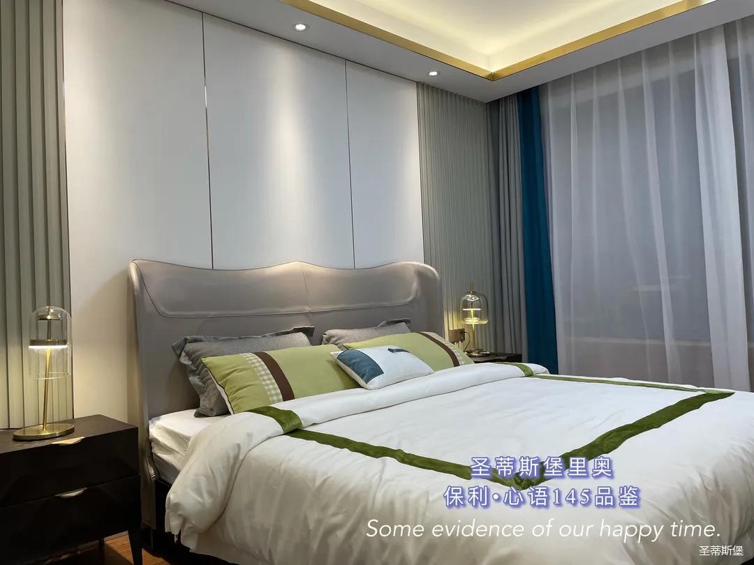 ▲床屏简约的线条与定制柜的功能设置让贴墙的艺术挂画,散发出优雅而大胆的美感。