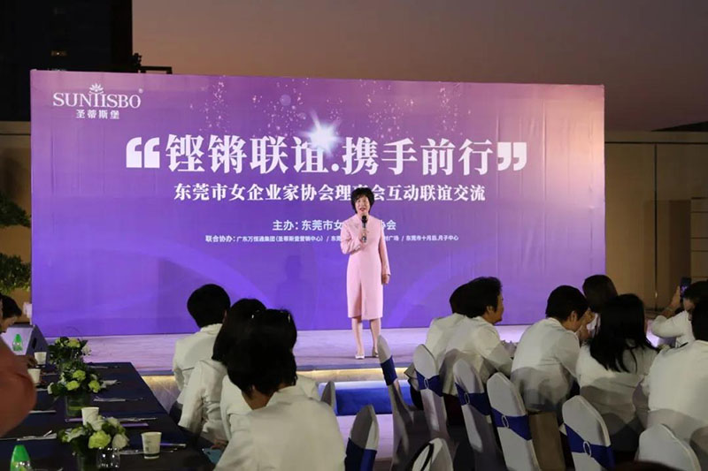 接下来,东莞市女企业家协会理事会会长叶小红女士上台发言,她表示非常感谢米兰·(milan)中国官方网站集团举办此次联谊交流会,同时,对我们的产品和企业文化给出了很高的评价。她号召东莞市女企业家协会以后要更多的举办此类交流联谊活动,以此增进会员企业之间的联系和了解,为未来进一步交流发展开创新局面!她希望我们能携手同行,强强联手,共赢未来,共创新辉煌!